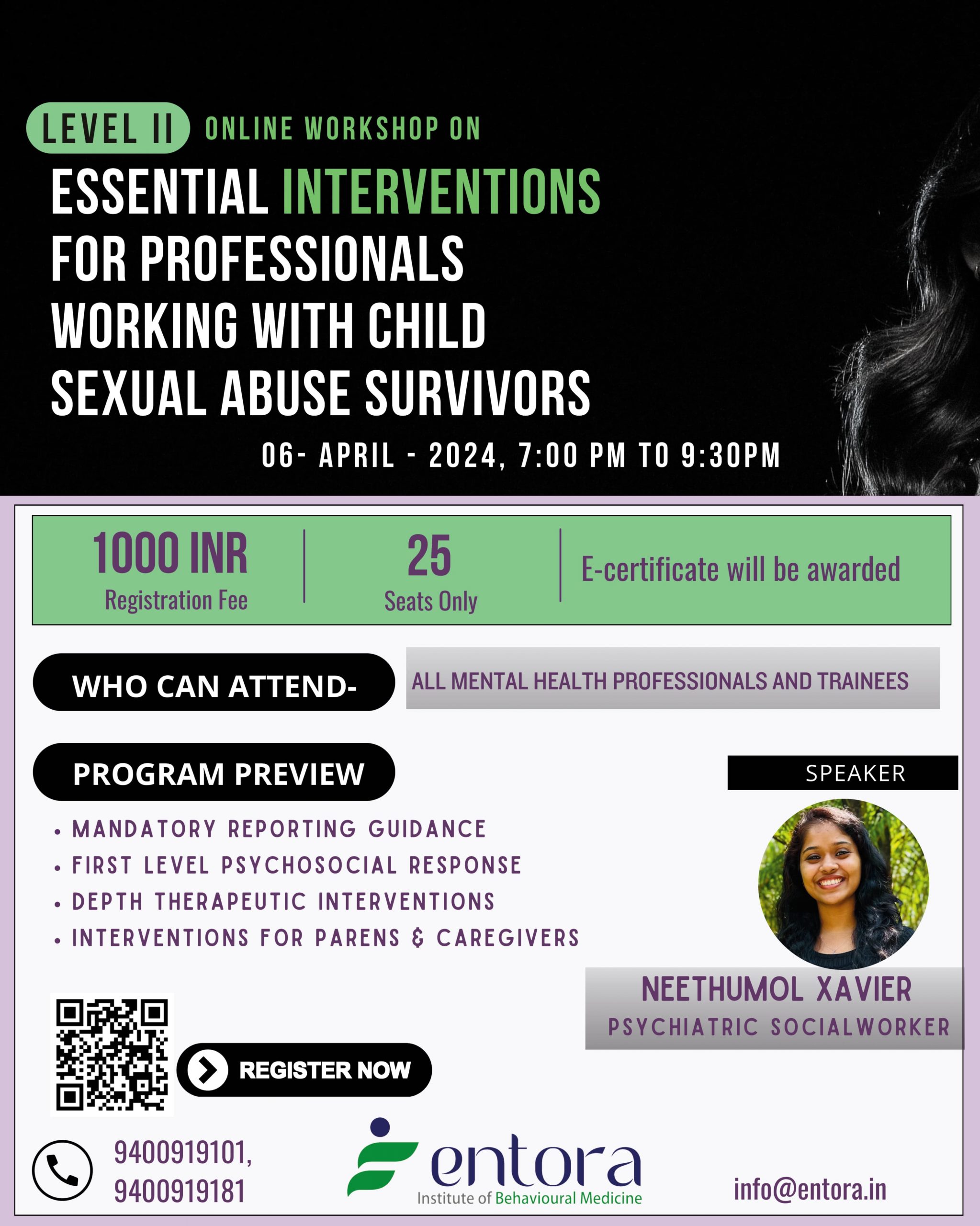 Level 2- Online Workshop on "Essential Interventions for Professional Working with Child Sexual Abuse Survivors"